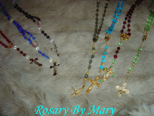 various types of hand crafted rosaries..